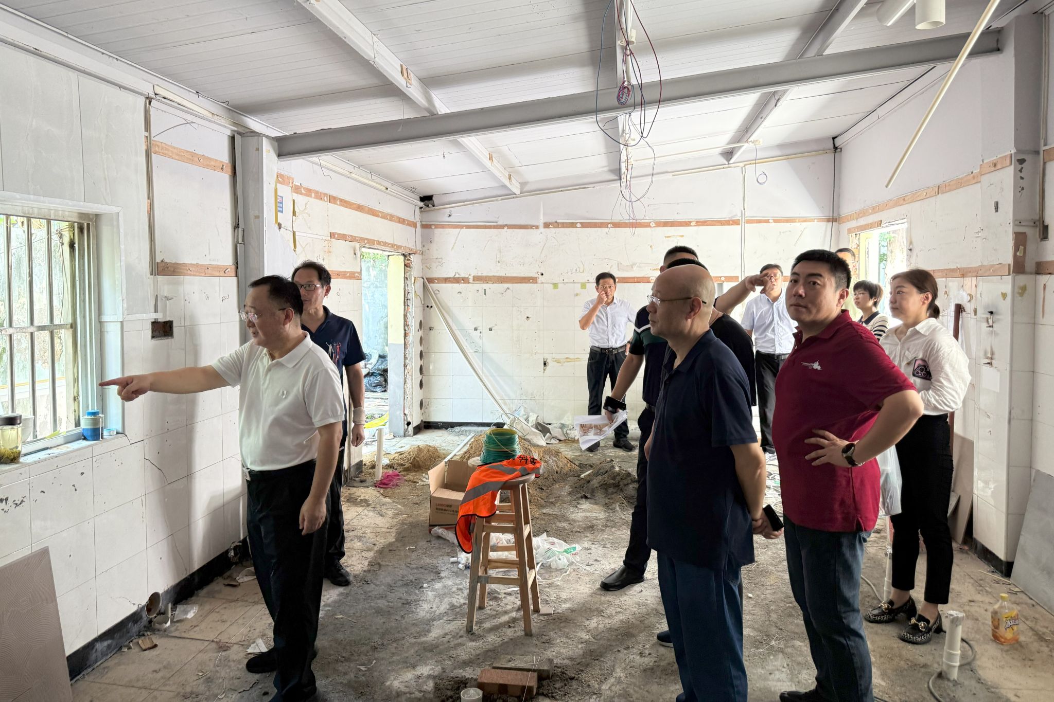 单正丰一行先后走访卫岗校区理科南楼、南苑公共洗衣房、南苑八舍学生公寓、南苑公共浴室、行政北楼及浦口校区校医院和滨江校区档案馆、19号楼等暑期重点维修、改造工程现场。在施工一线,单正丰详细询问工程进度、安全管控及防暑措施落实情况,并对高温作业下的建设者表示慰问。他强调,各施工单位务必科学应对高温酷暑,合理安排作业时间,保障人员健康安全;同时要强化责任担当,在确保施工安全和工程质量的前提下,抢抓暑期校园基础设施建设的“黄金期”,高效推进工程进度,务必保障新学期各项工程如期投入使用,为教学科研工作的顺利开展奠定坚实基础。